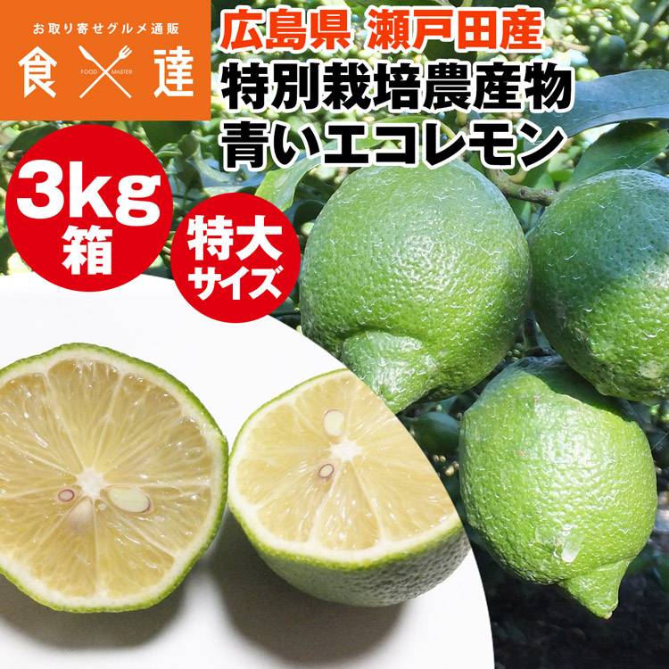 レモン 3kg 特大サイズ グリーンレモン 広島県産 瀬戸田 青レモン 国産レモン 特別栽培農産物 産直 常温便 同梱不可 指定日不可