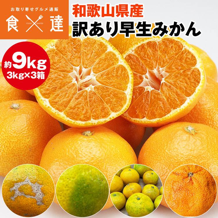 みかん 訳あり 9.4kg (9kg+保証分450g程度) 3kgx3箱セット 和歌山県産 早生みかん 温州みかん ミカン 蜜柑 柑橘 わけあり 常温便 同梱不可 指定日不可