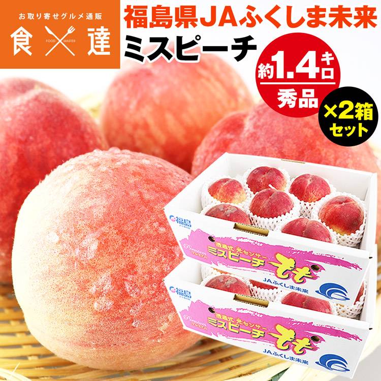 桃 福島県産 ミスピーチ 品種厳選 2箱セット 約2.8kg 10~14玉 (1箱 約1.4kg 5~7玉) 贈答用 冷蔵便 同梱不可 指定日不可 モモ もも あかつき 白鳳 川中島白桃