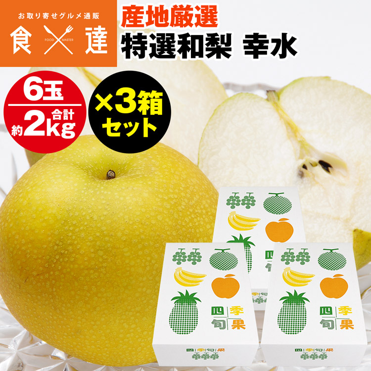 梨 幸水 3箱セット 18玉 約6kg (1箱あたり6玉約2kg) 3Lサイズ 青秀以上 贈答用 ギフト 三水 ナシ こうすい 冷蔵便 同梱不可 指定日不可