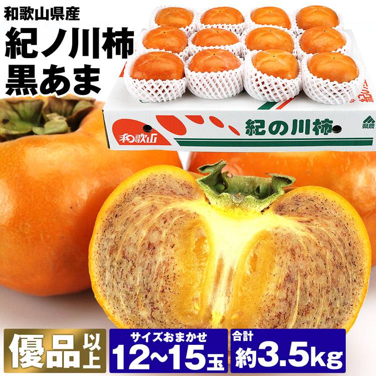 柿 高級 紀ノ川柿 黒あま 12~15玉 合計約3.5kg 和歌山県産 優品以上 紀の川柿 最上級 常温便 同梱不可 指定日不可 旬