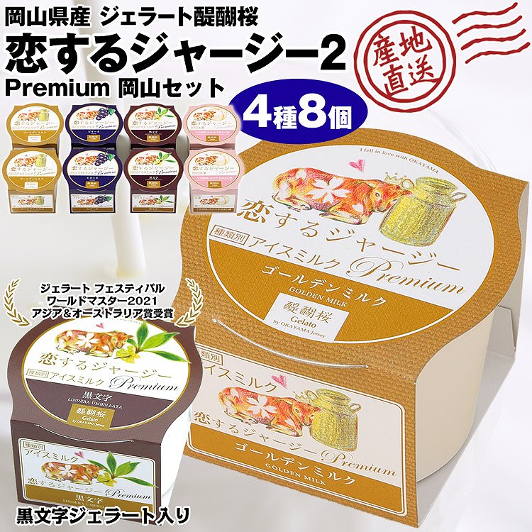ジェラート アイス 5種8個入り 国産 ジャージーミルク 岡山県産 恋するジャージー Premium 桃 バナナ ゆず ピオーネ ジェラート醍醐桜 産地直送 冷凍便 産直