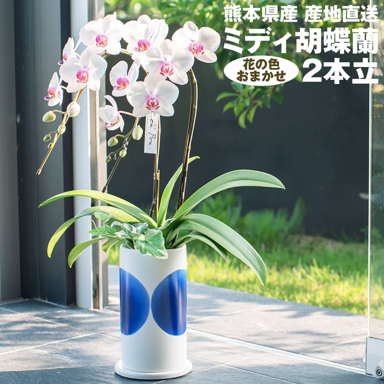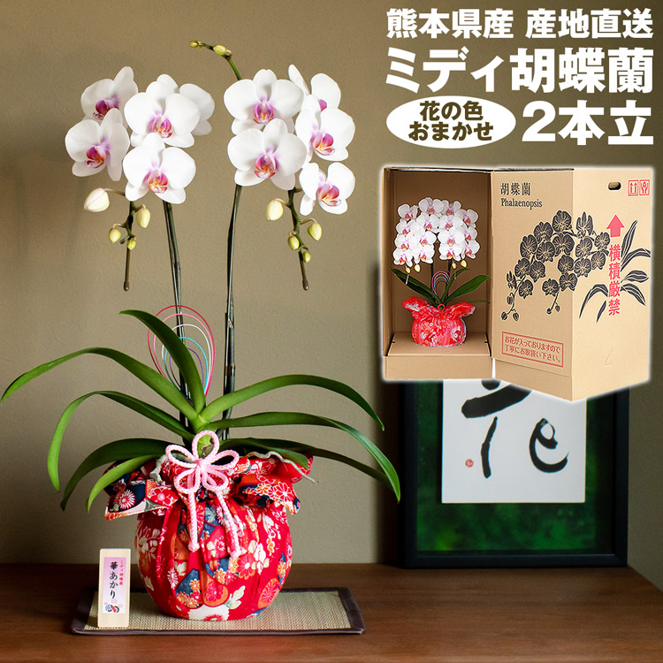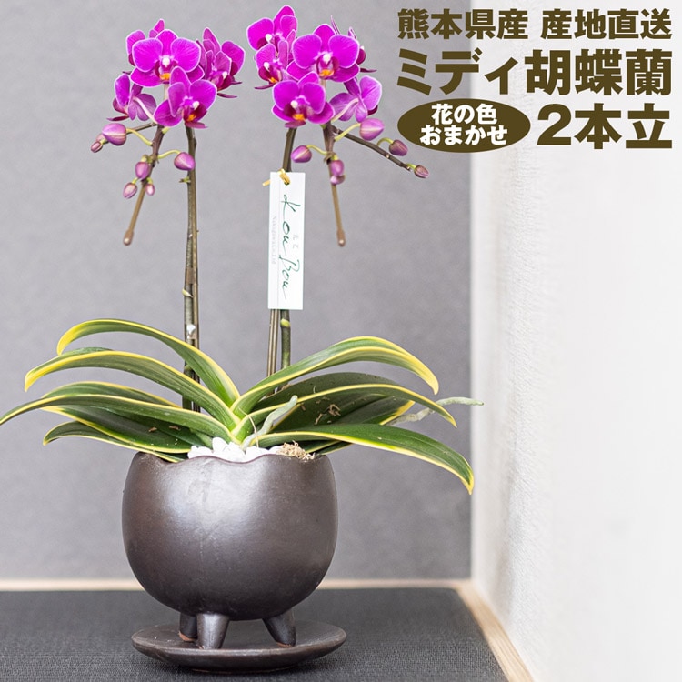 胡蝶蘭 ミディ 2本立 (鉢も付属) 花の色おまかせ 産地直送 熊本県産 華てまり なかがわ農園 五蘭塾 洋蘭 ラン 洋ラン 花 常温便 産直