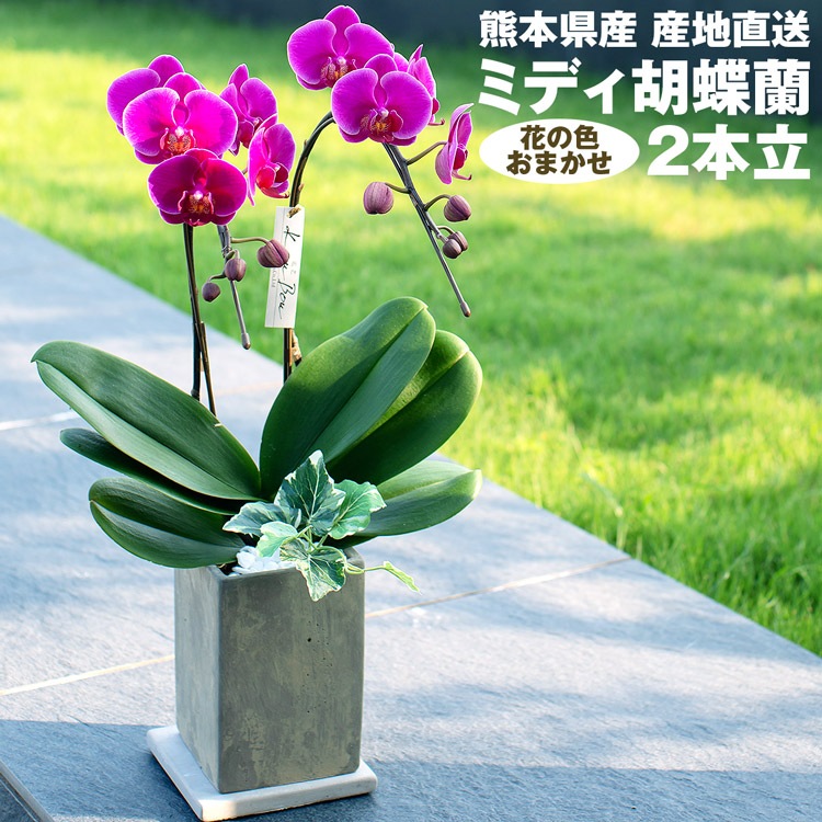 胡蝶蘭 ミディ 2本立 (鉢も付属) 花の色おまかせ コンクリート鉢 光芒 大地 産地直送 熊本県産 なかがわ農園 五蘭塾 洋蘭 ラン 洋ラン 産直