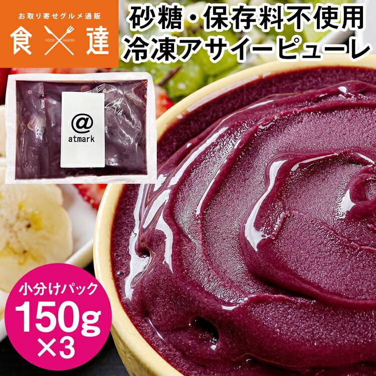 | 全国展開の大人気アサイーボウル専門店@atmarkから冷凍ピューレが登場! 厳選した素材をバランスよくブレンドしたこだわりのオリジナルピューレです。 豆乳を少し加えてミキサーにかけるだけで お店と同じ味わいの、もったりアサイーボウルが完成します。 冷凍庫にストックしておけば、朝食や小腹がすいた時に大活躍。 砂糖・保存料不使用で、 毎日でも安心してお召し上がりいただけます。 <商品詳細> 【名称】冷凍アサイーピューレ 【原材料】アサイーピューレ(ブラジル産)、バナナ、マンゴー、ミックスベリー、無糖ヨーグルト 【添加物】クエン酸、安定剤(ペクチン)、香料 【アレルギー28品目】バナナ、乳成分、ゼラチン 【遺伝子組み換えの有無】無し 【商品説明】アサイーや各種果物をミキサーにかけ、攪拌し急速冷凍致しました。 【内容量】150g×3袋 【保存方法】要冷凍(ー18℃以下) 【賞味期限】商品記載(※ご家庭用の冷凍庫の場合、2か月を目安にお早目にお召し上がり下さい。) 【喫食方法】冷蔵もしくは流水解凍し、半解凍させ、お好きな果物やナッツをトッピングし、お召し上がりください。 【取り扱い注意点】 再凍結は品質劣化のもとになります。解凍後は使い切ってください。 ※開封後、なるべく早くお使いください。 |